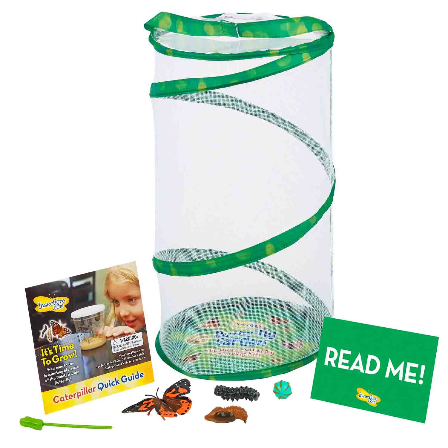Witness the wonder of the butterfly life cycle with this amazing educational experience! See the caterpillars’ transition over 3 weeks and emerge as Painted Lady butterflies! Safe to release into the environment. Includes colorful pop-up habitat, a certificate for butterfly larvae* with special food, feeding kit, and complete instructions. (5 larvae). Please note: the Butterfly Pavilion includes a certificate for 5 larvae only. *Minimal additional charge incurred when sending a certificate for live specimens.Â