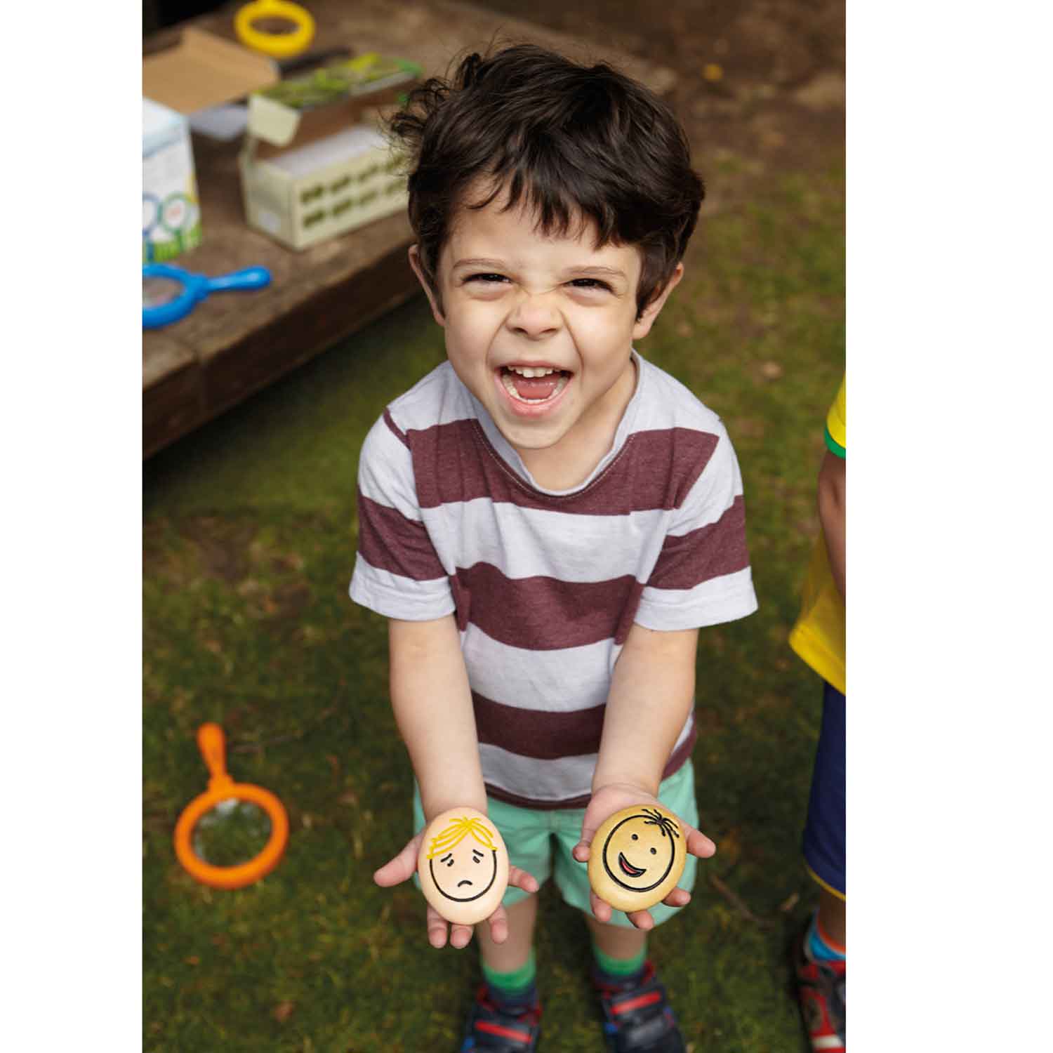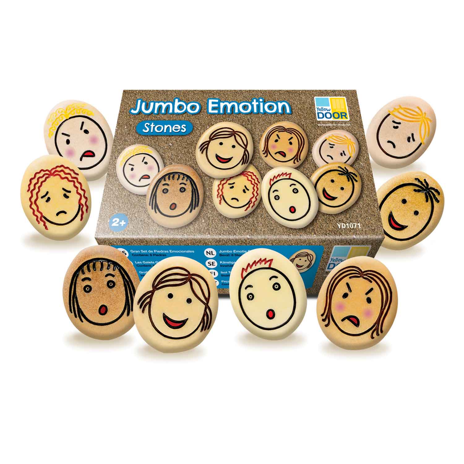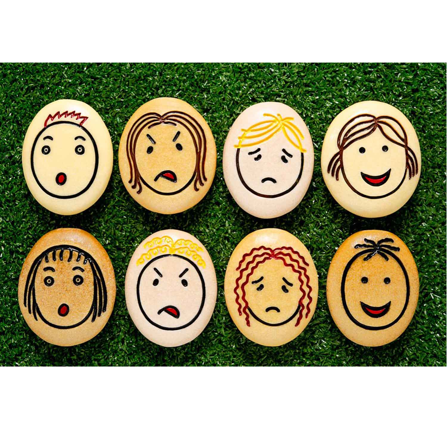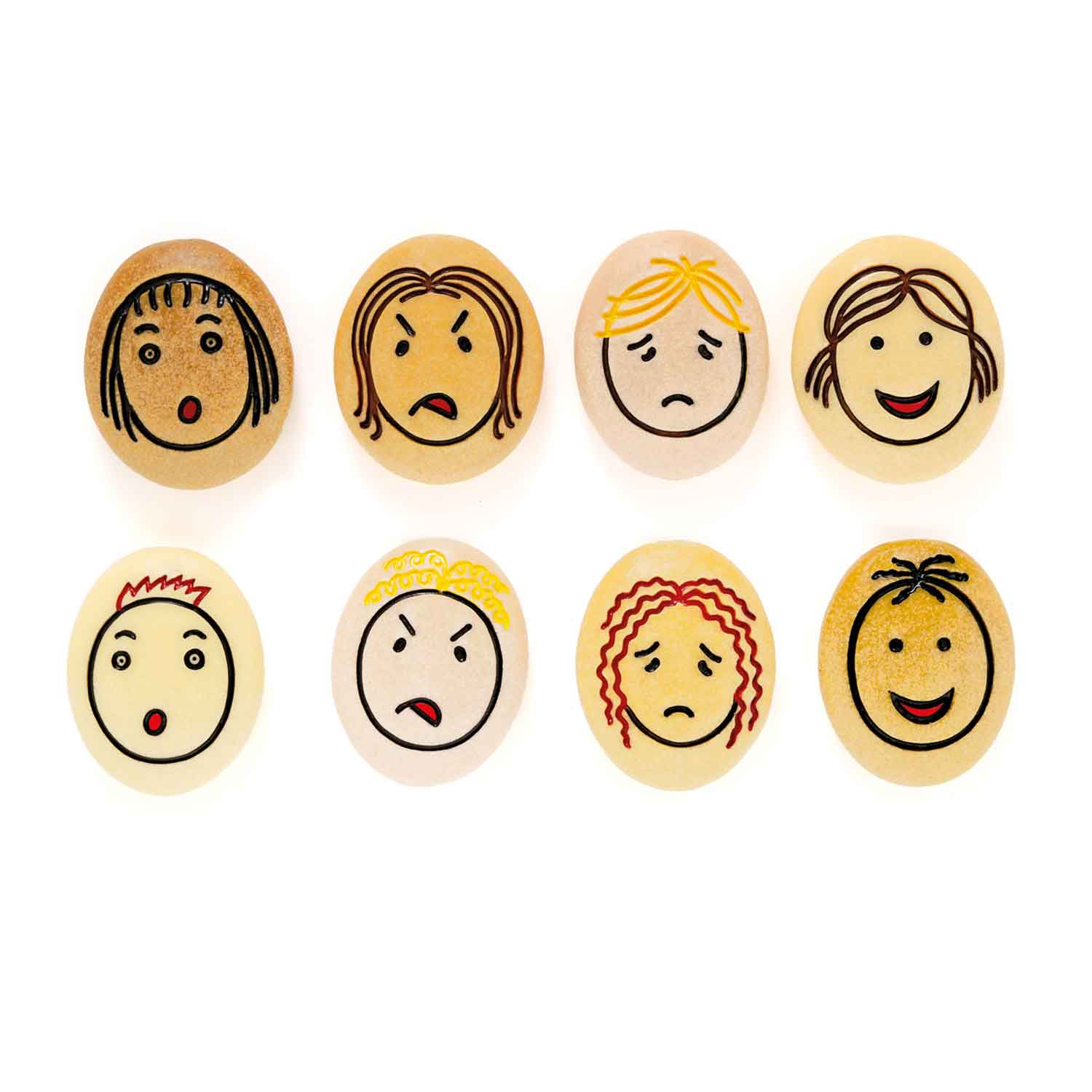 This set of tactile emotion stones has been developed especially for young learners and are perfect and safe for small hands to explore. Featuring the four emotions that young children most readily identify and experience – happy, sad, surprised and angry – the set includes two examples of each feeling, so that you can use them for matching activities. Durable and washable, they are cast from our unique stone mix and can be used outdoors and in sand and water. Perfect for making play clay images!