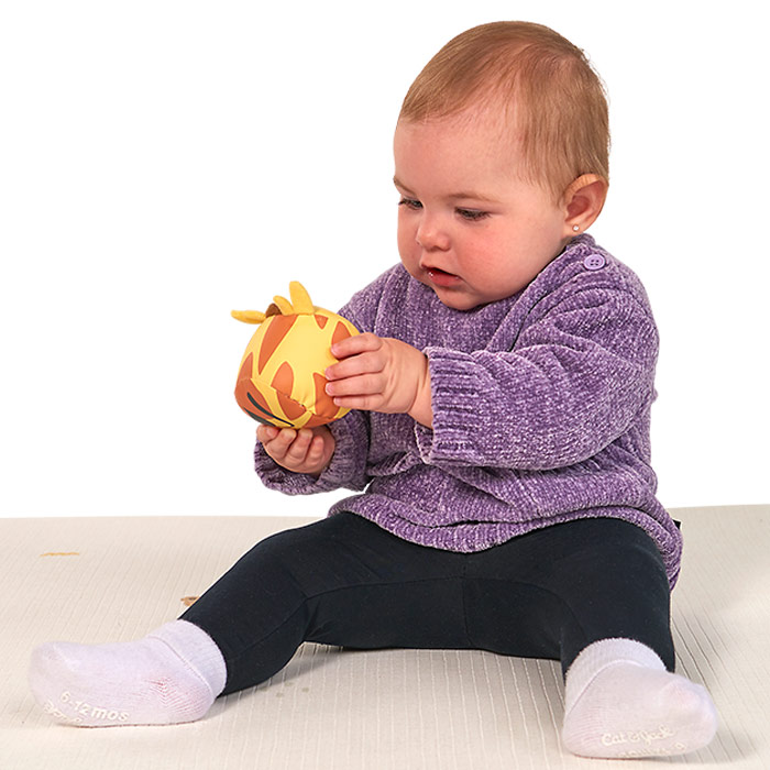 Jungle Friends Roly Poly Balls is a set of 4 adorable and fun jungle animals to amuse infants as they begin to develop fine motor, tactile, and hand-eye coordination skills. The round shape and soft contrasting textures make the balls easy to grasp as infants explore their early sensory skills and shake the balls to hear the different bells inside each one. Set includes a lion, giraffe, panda, and crocodile.