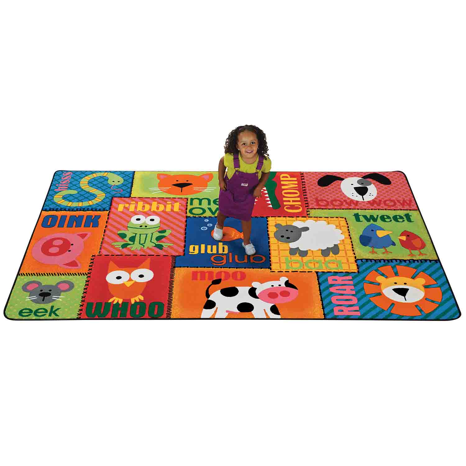 What sound does a lion make? What sound does mouse make? Learn different animal sounds with the Animal Sounds Classroom Rug. This classroom carpet will help assist in speech development. Our new plush yarns create a warm and cozy area for little ones to snuggle up and play. These soft fibers are gentle to the touch and will enhance any classroom.