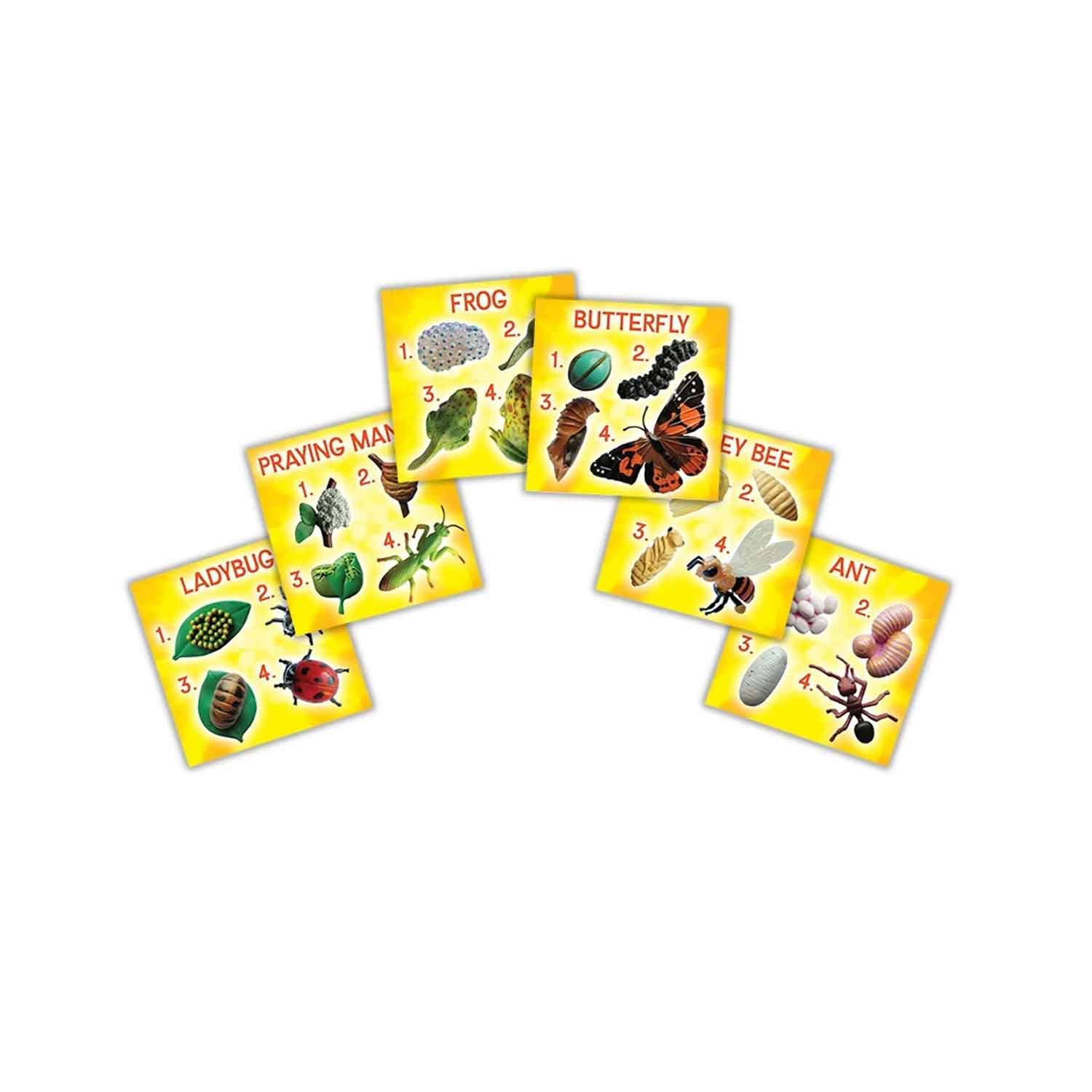 - 24 pieces includes 6 life cycle stages - Butterfly, Ladybug, Honey Bee, Praying Mantis, Ant and Frog