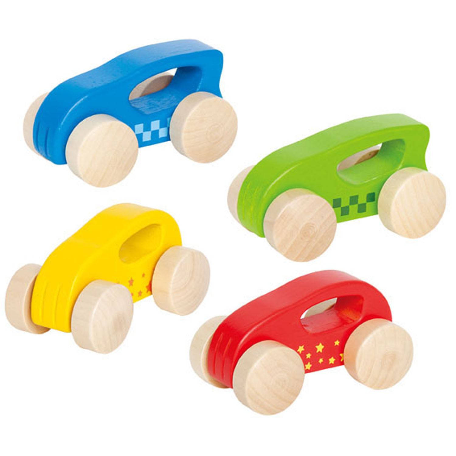 V'room! These hand-powered wooden vehicles are perfectly sized for toddlers. The Little Autos encourage imitative and imaginary play. Each vehicle features bright colors and wooden wheels.