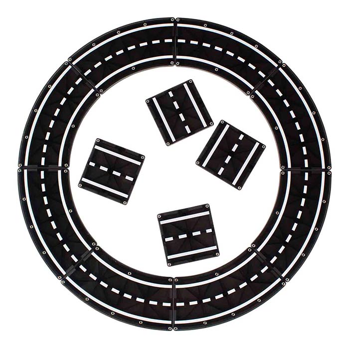 The Magna-Tile Xtra Roads Set is designed to help children create different road configurations for their toys and vehicles. The magnetic roads can be easily connected and reconnected, providing multiple building options. The set includes all the pieces required to build a perfect circle (8 curves) or an oval racetrack (8 curves + 4 squares).