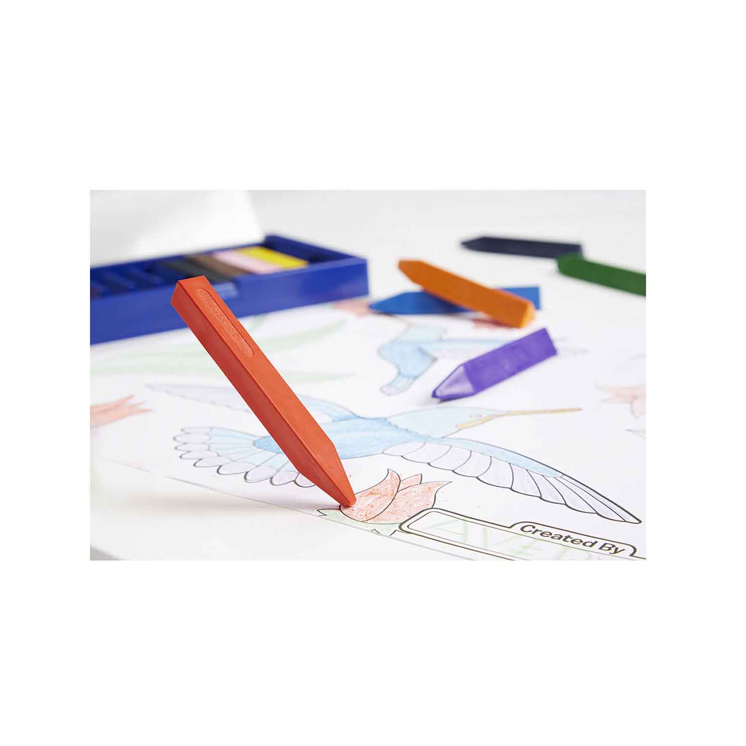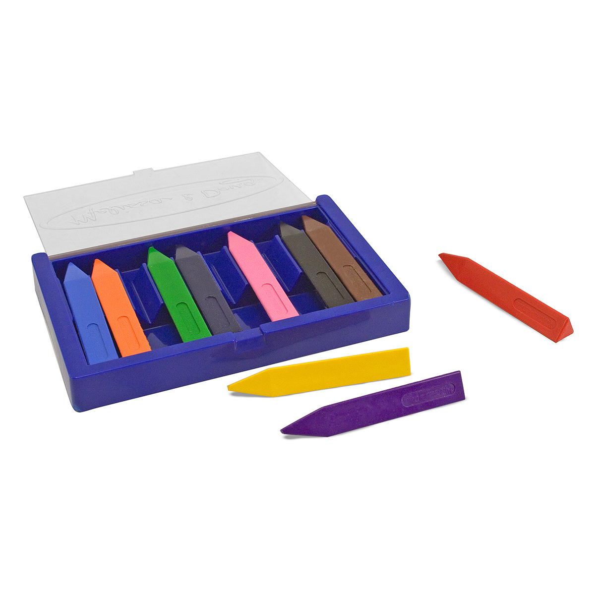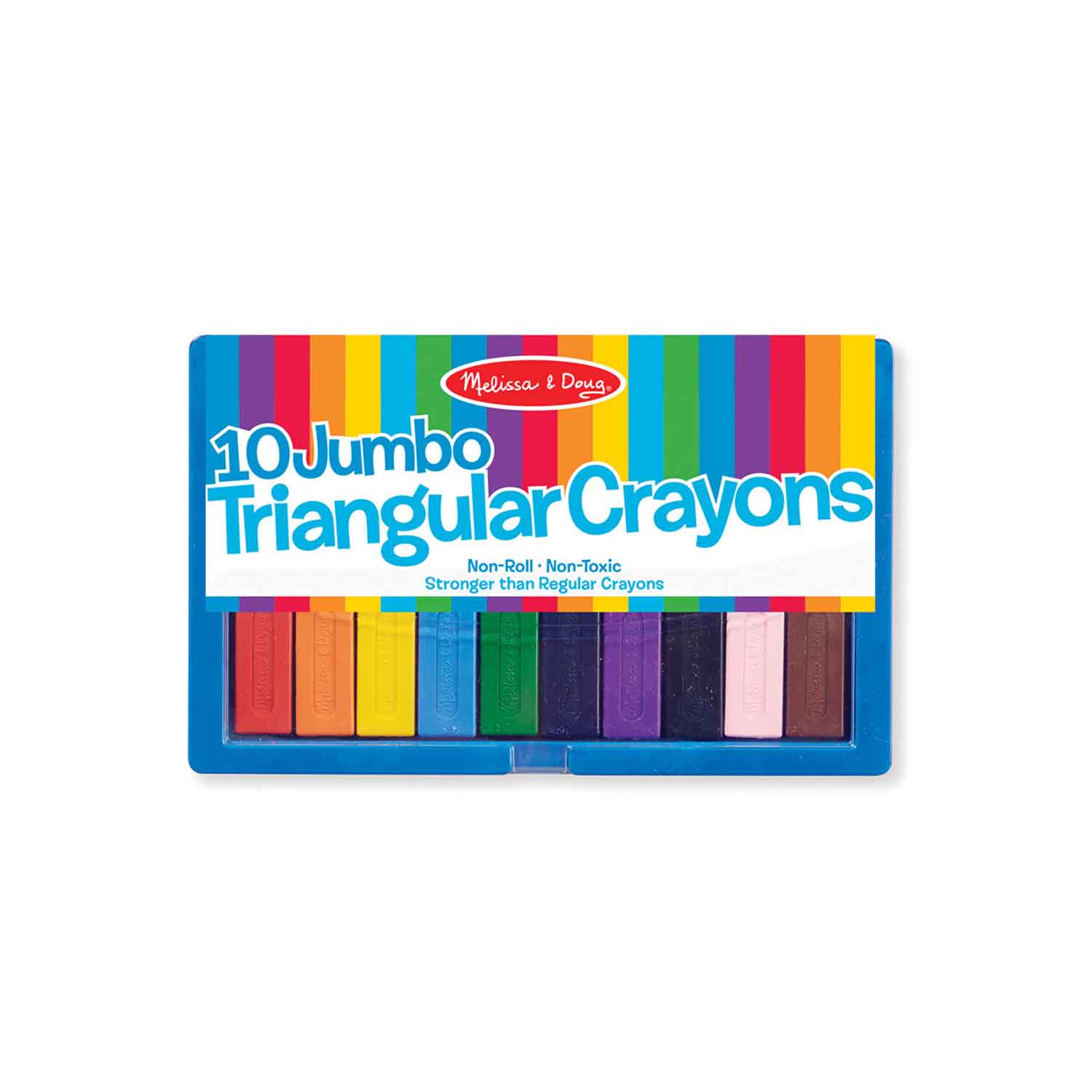 The bright colors of these crayons will encourage your child's creativity and the unique triangular shape will help develop the preferred grip for later writing skills. They are made of plastic, not wax, for additional durability and their easy to grasp design, won't allow them to roll away! A flip-top case makes clean-up and travel a snap!