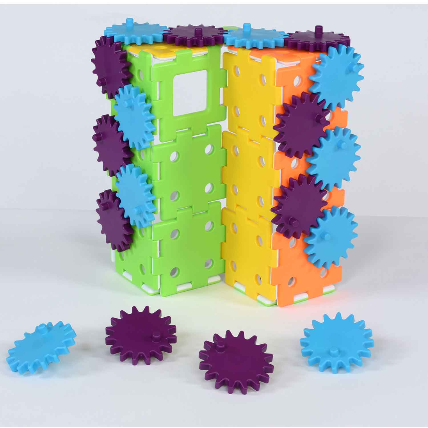 A great way to introduce younger children to gears! Large, brightly colored pieces are easy to join together to create stunning 2D and 3D models. Children build their model and push the gears into the squares. Not only do the gears mesh together on a flat surface, but also at a 90-degree angle. Turn one gear and see the rest move with it!