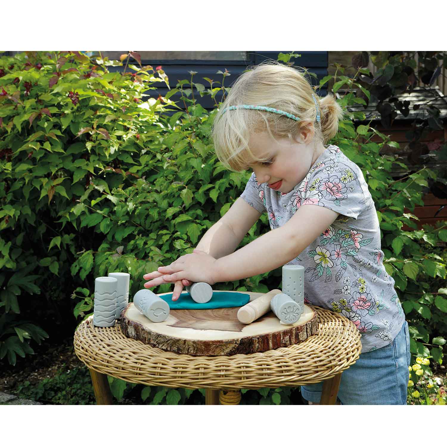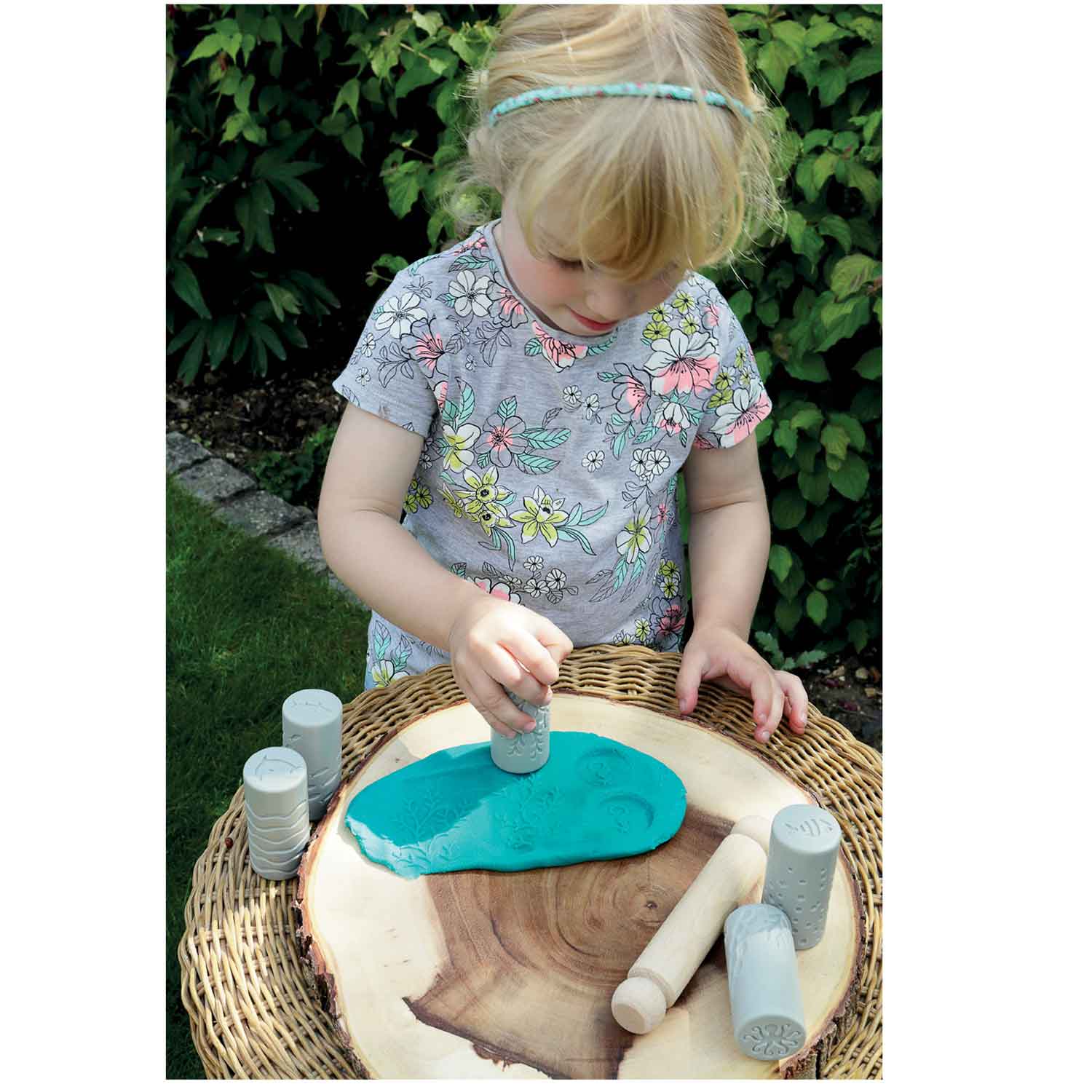Use the stamps to bring the water to life with a variety of sea creatures! These stone dough roller sets that depict ocean life are easy for children to use when creating patterns and prints in dough, sand, and dirt. The set includes: dolphin and waves, turtle and coral, fish and bubbles, seahorse and seagrass, shark and fish, octopus and cave.