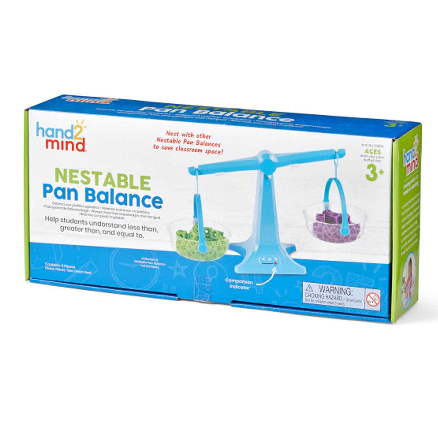 Explore measurement and weight while saving classroom space. The nestable pan balances assemble in 3 quick and easy steps. After weighing and comparing the items in the two pans, the child can carefully slide the comparison indicator to show greater than, equal to, or less than. Clear pans work well for both liquids and solids.