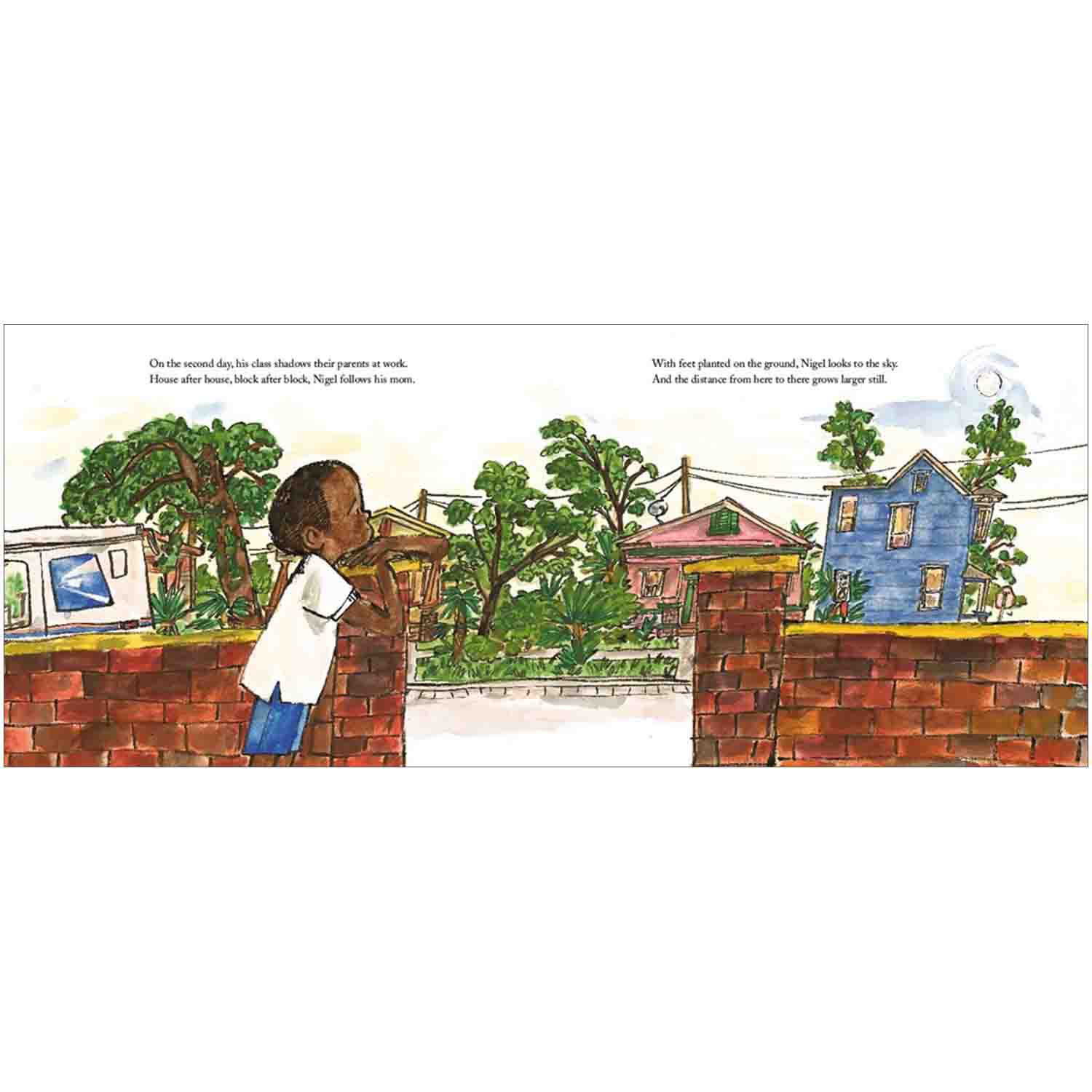 Jumpstart's Read for the Record 2022 Book. Nigel and the Moon tells the story of a young schoolboy with big dreams of moving past his fear of judgment to share them with his class during career week. When Nigel looks up at the moon, his future is bright. He imagines himself as…an astronaut, a dancer, and a superhero, too! But it’s career week at school, and Nigel can’t find the courage to share his dreams. It’s easy to whisper them to the moon but not to his classmates, especially when he already feels out of place.