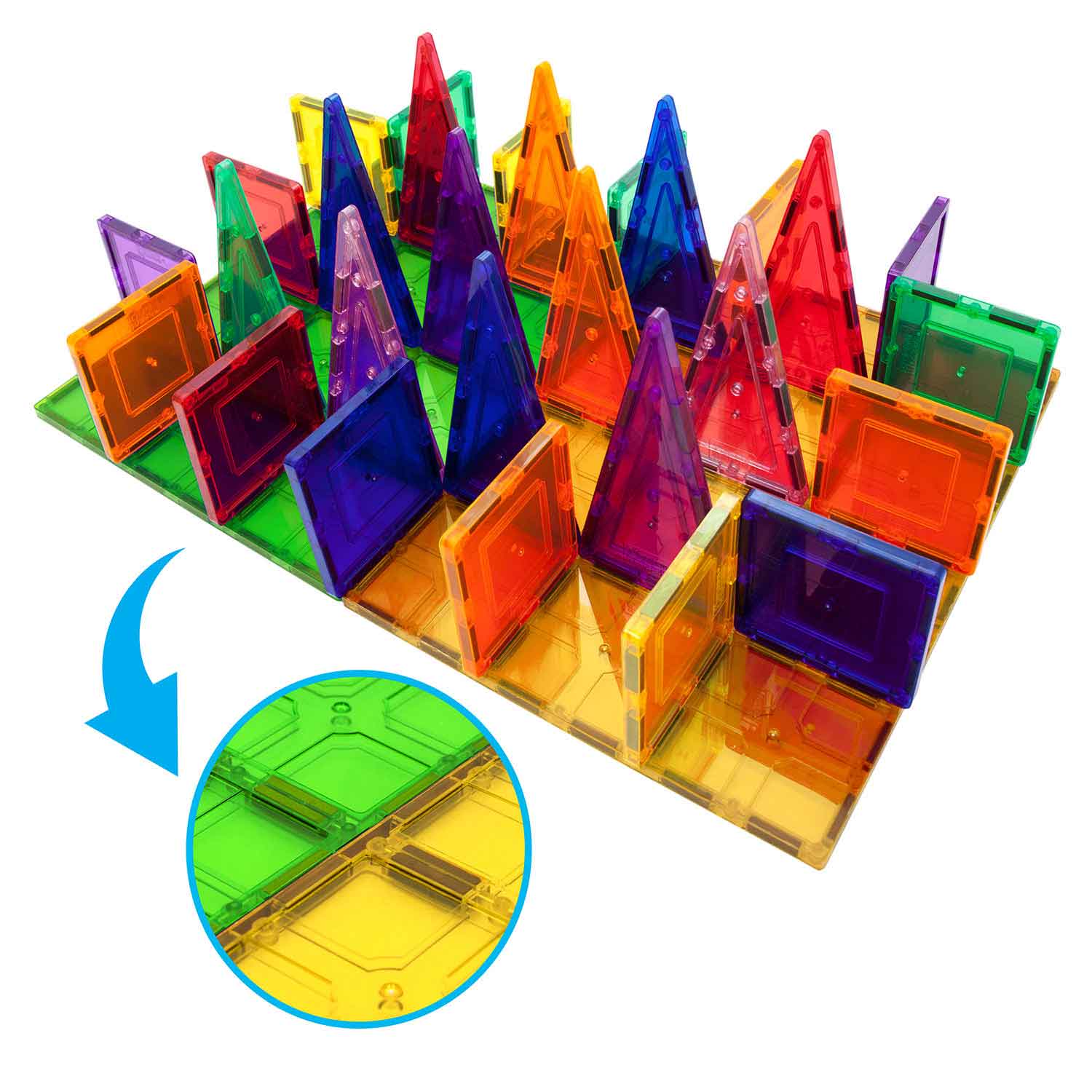 Large bases support magnetic building structures. Bases an be assembled either as a stand alone magnet tile geometry set or in conjunction with other PicassoTiles magnetic building blocks.