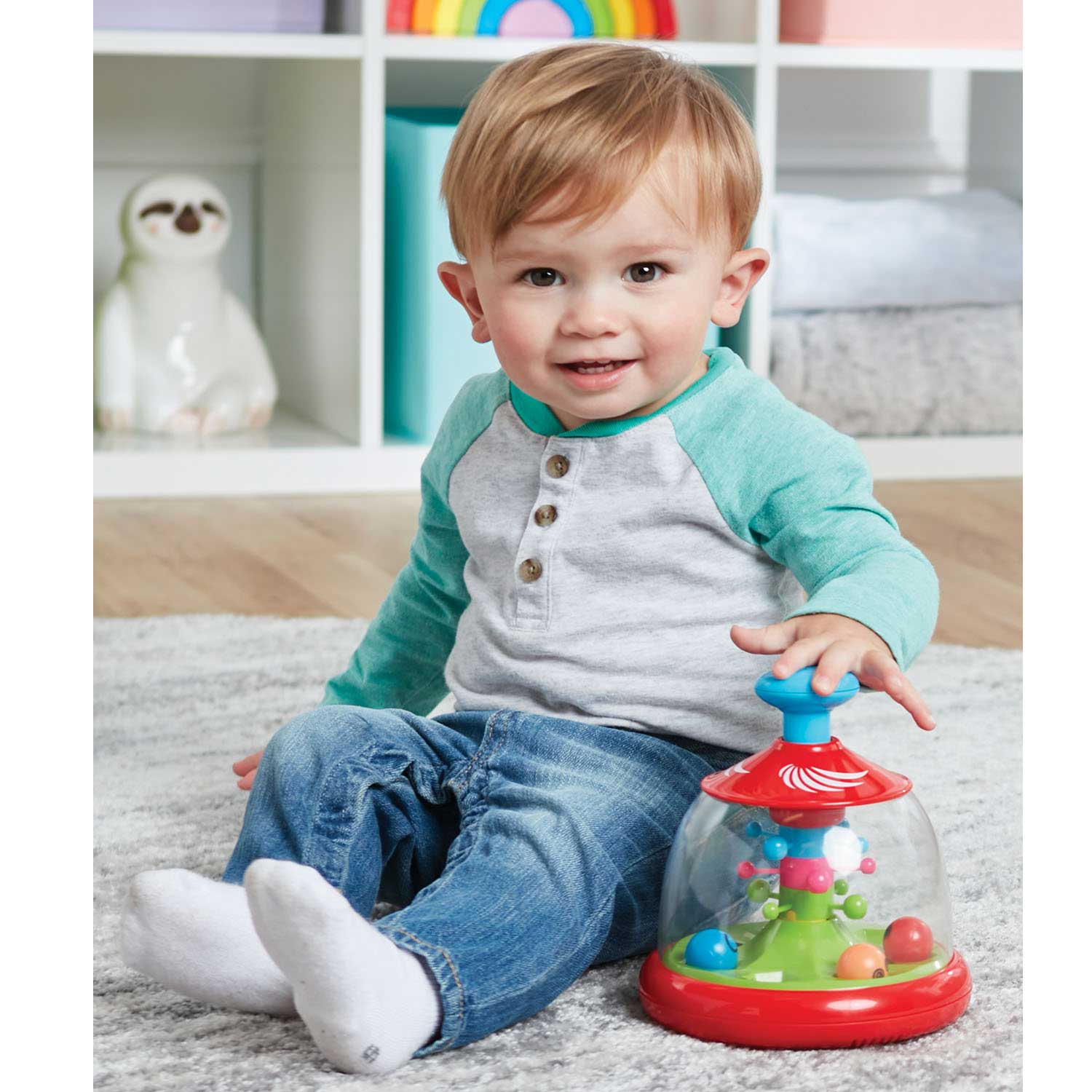 Push the handle and watch the colorful, smiling balls tumble around. Babies will love the sound and action of the multi-color balls. The Press 'N Tumble Activity Dome enhances developmental skills like memory and hand-eye coordination.