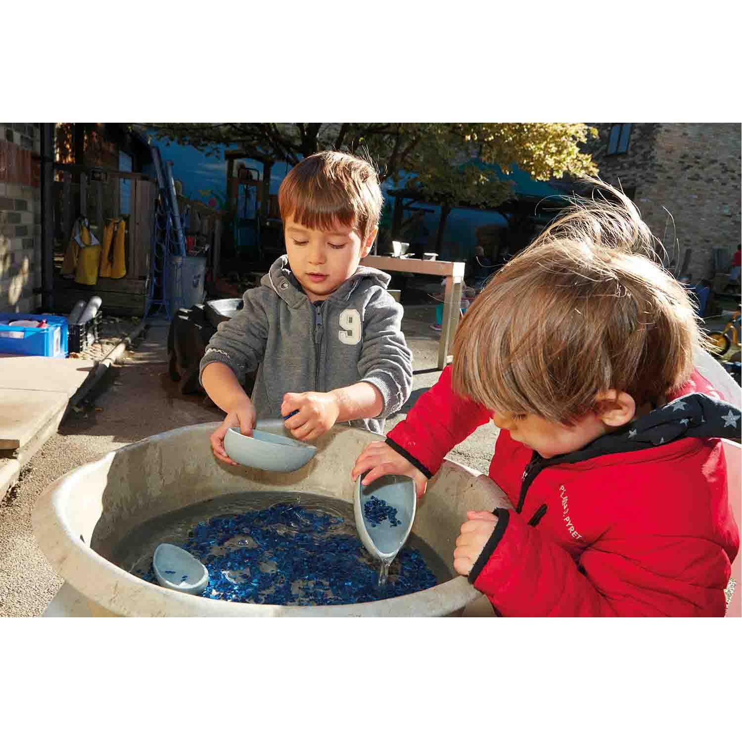 These charming rustic pourers are robust enough to be used outside with a range of materials and will enhance sand, water and muddy play. Easy to hold, they can be used to scoop and pour liquids and solids. Ideal for exploring and comparing volumes, the shaped lip makes pouring intuitive and easy for young learners.