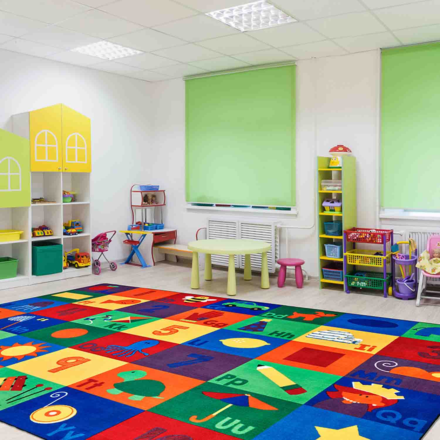 The Sequential Seating Literacy Classroom Rug features upper and lower case letters with a matching icon in each square. Numbers and shapes make this a great multipurpose classroom rug that can be used for a variety of lessons and a great tool to encourage learning.