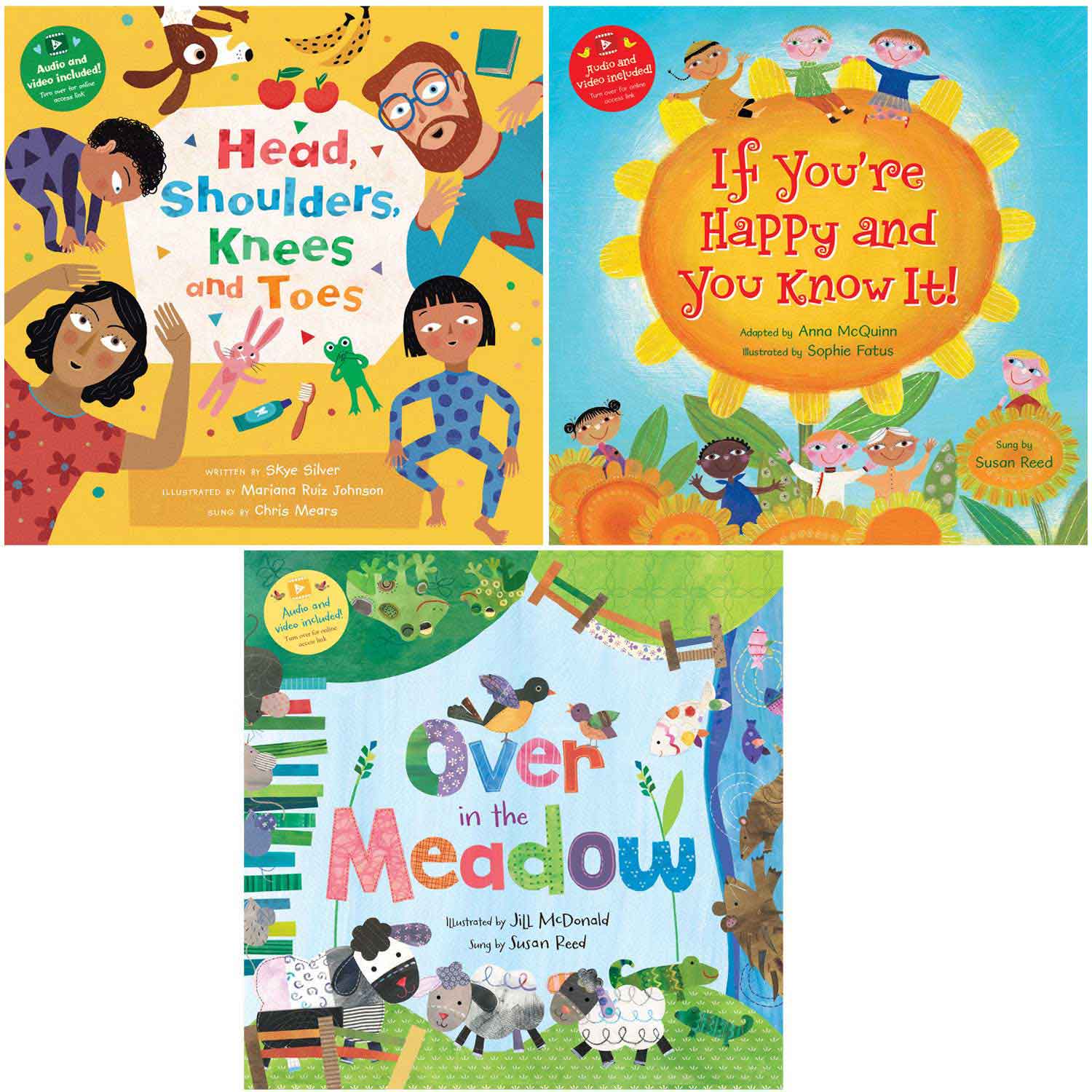 These creative versions of familiar songs offer images with rich diversity. Books have QR codes and URL links to audio and animated versions.