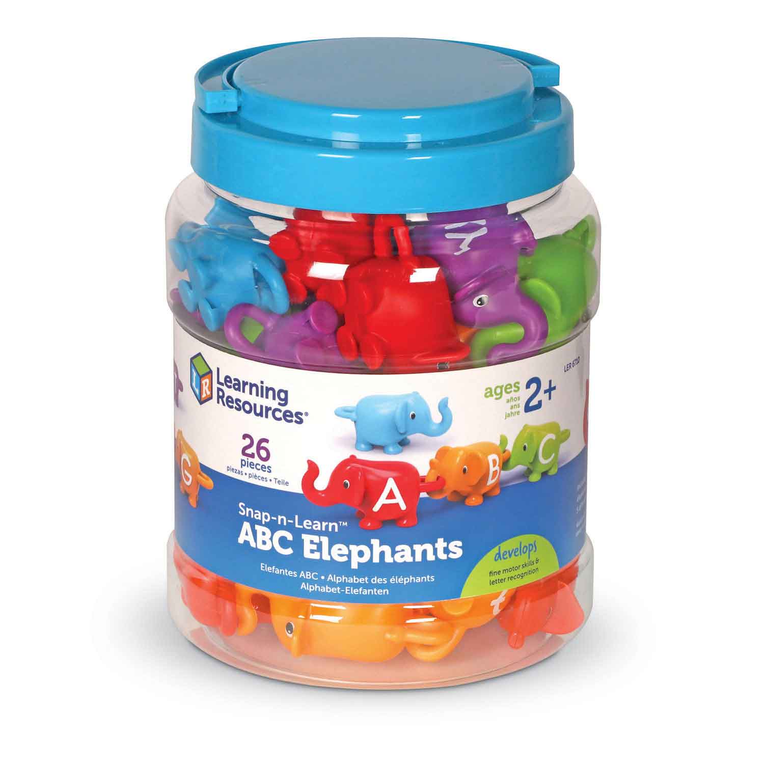 Printed with every letter of the alphabet, these colorful elephants come with snap-together trunks and tails that make learning language skills easy and fun. Their easy-to-grab plastic construction makes it simple for little hands to develop fine motor skills during each engaging play session. They also grow along with kids’ skills—once they’ve mastered snapping elephants together in alphabetical order, little ones can also snap their elephants together to form simple words and work on basic vocabulary skills.