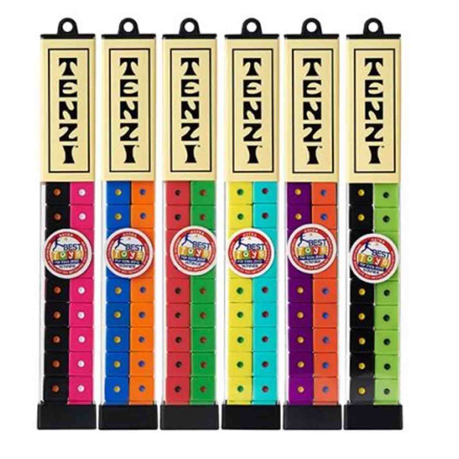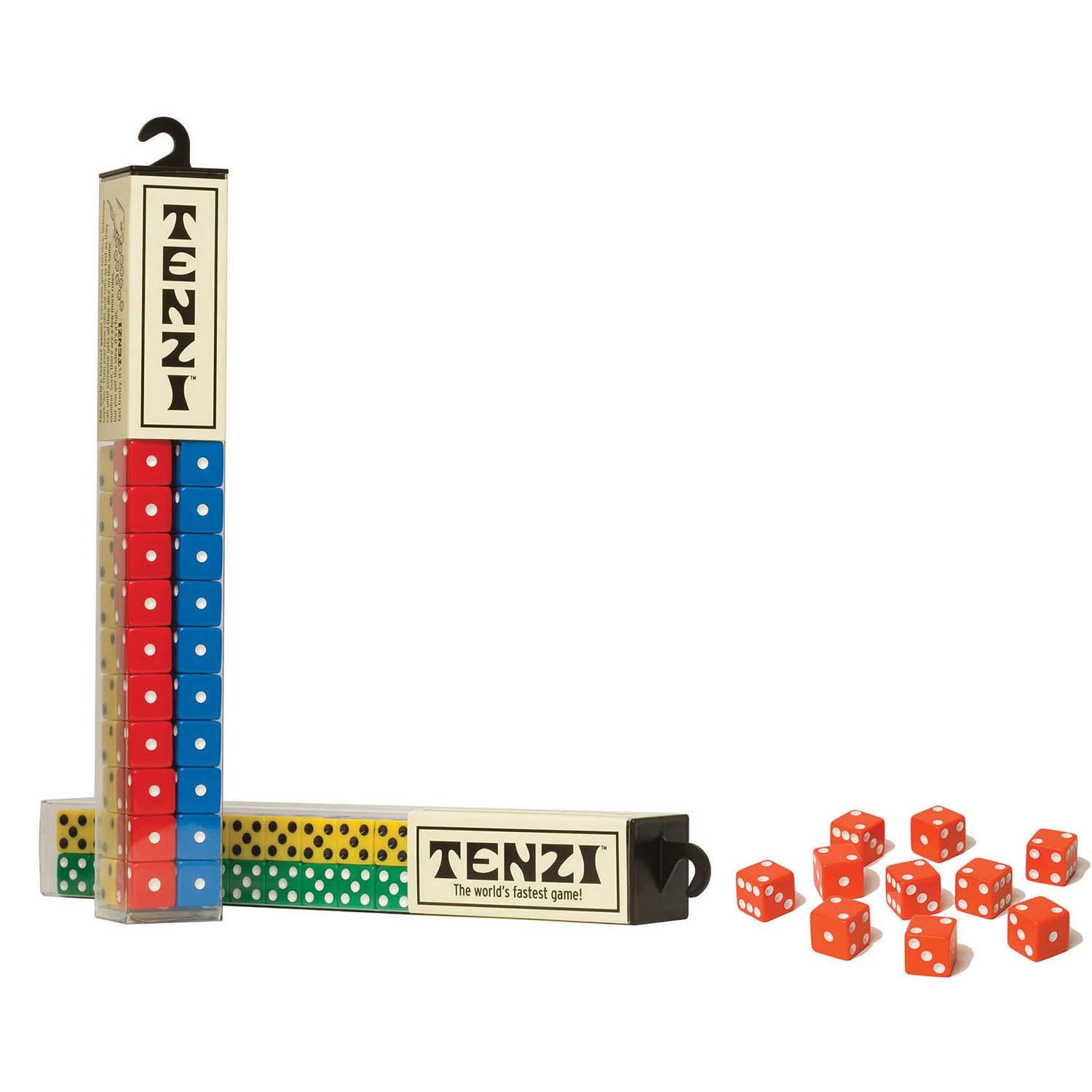 It's the world's fastest game! Everyone gets ten dice. Someone says Go. Then everyone rolls and rolls as fast as they can until someone gets all their dice on the same number and shouts "TENZI"!