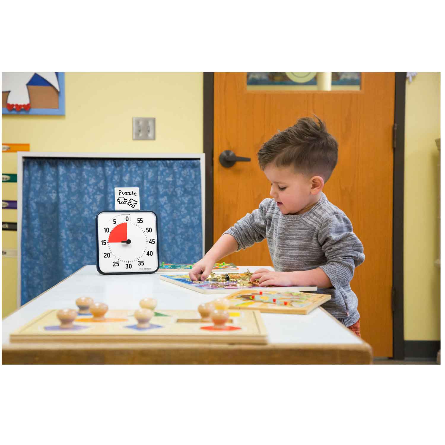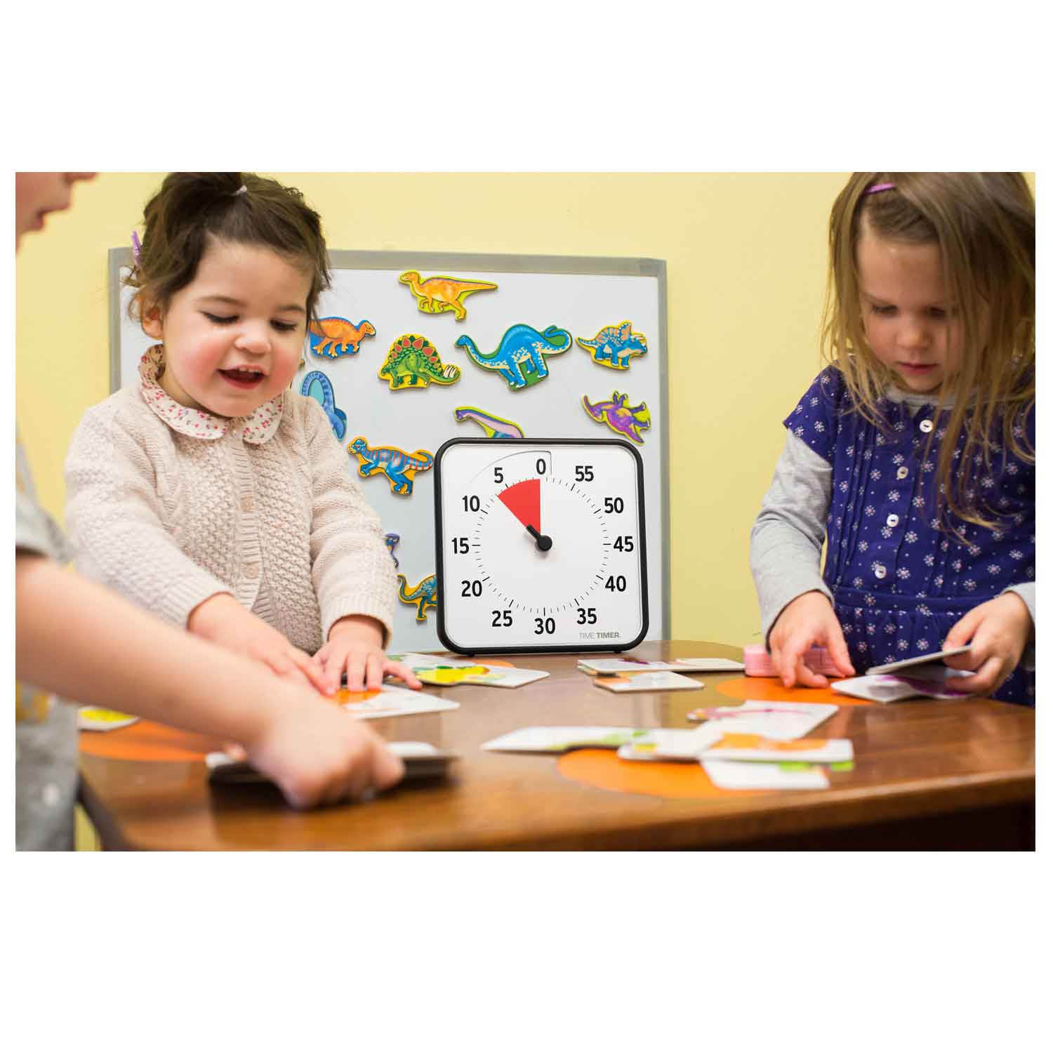 The most popular and versatile Time Timer gives you the power of a visual timer in a light weight, accessible size. 8-inch Time Timer Features: Patented red disk that disappears as time elapses. No ticking, no distractions, no setup required. Optional audible signal when time is up. Free-standing or wall-mounted options.