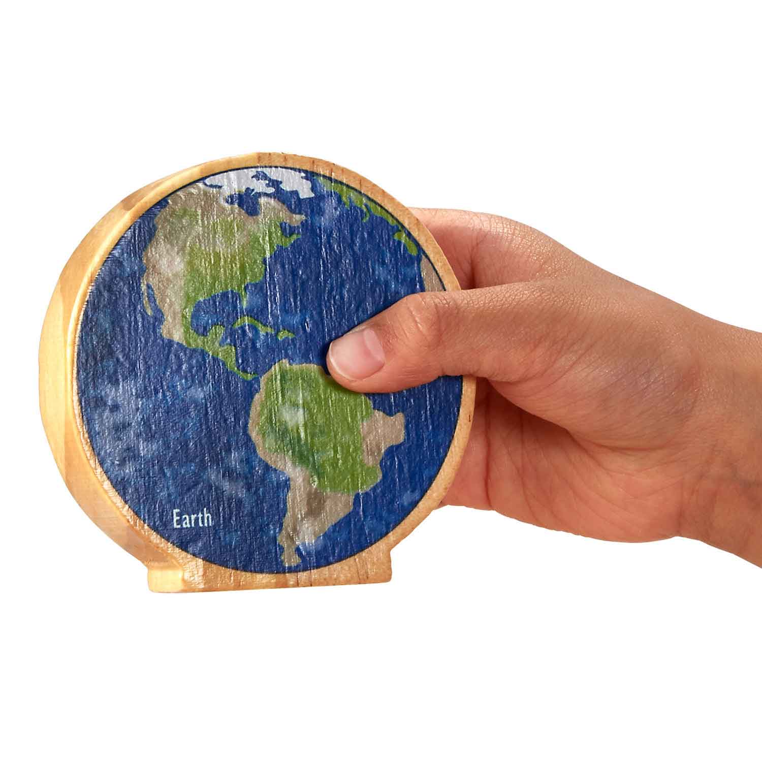 Time to take a trip into space! This 12-piece chunky block set includes all the planets in our solar system, the Sun, two astronauts (male and female), and a rocket. These blocks are perfect for imaginative play in the block area and to introduce our Solar System. Illustrations are printed on both sides and include the planets' names.