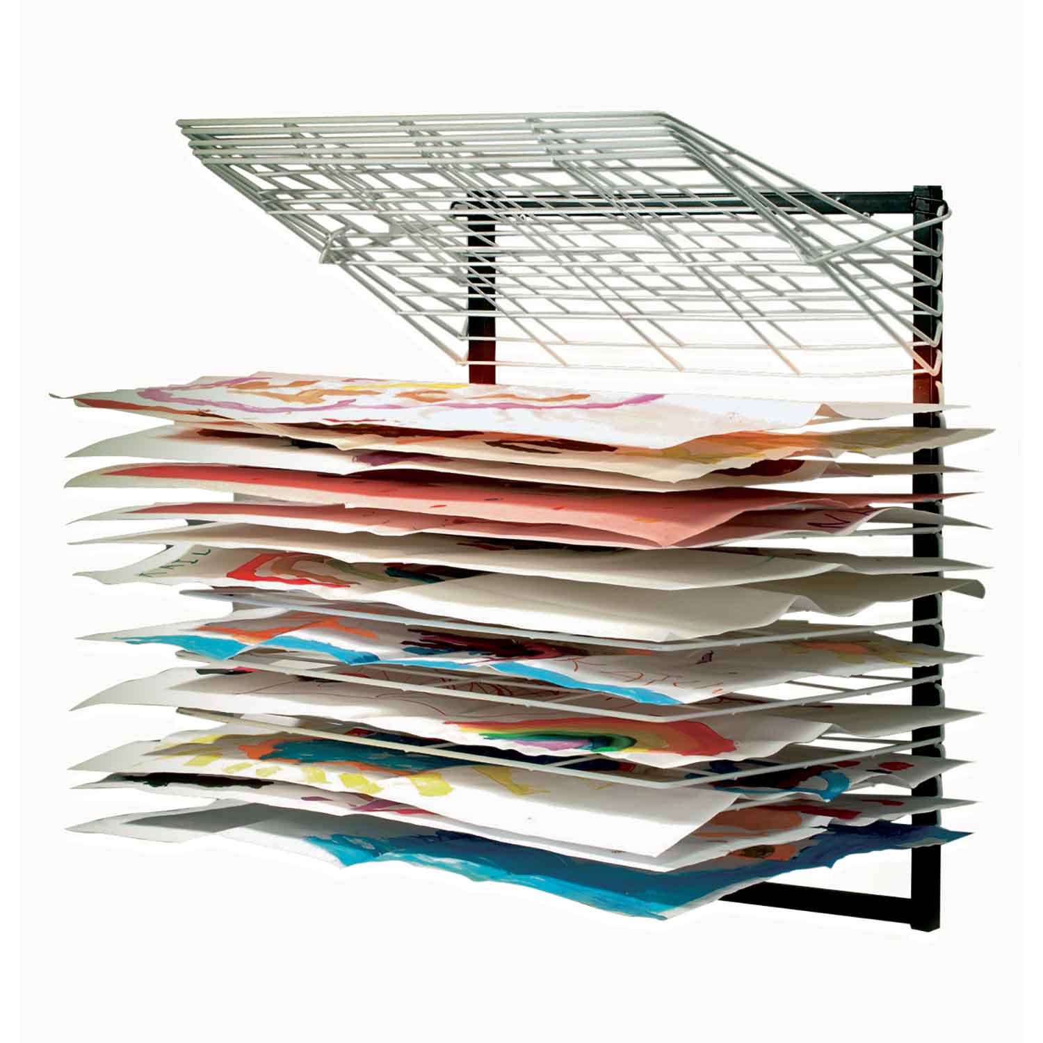 If floor space is at a premium in your classroom, use our drying racks. Features 20 shelves and two hooks at the top to hold shelves upright. Mounting hardware not included.