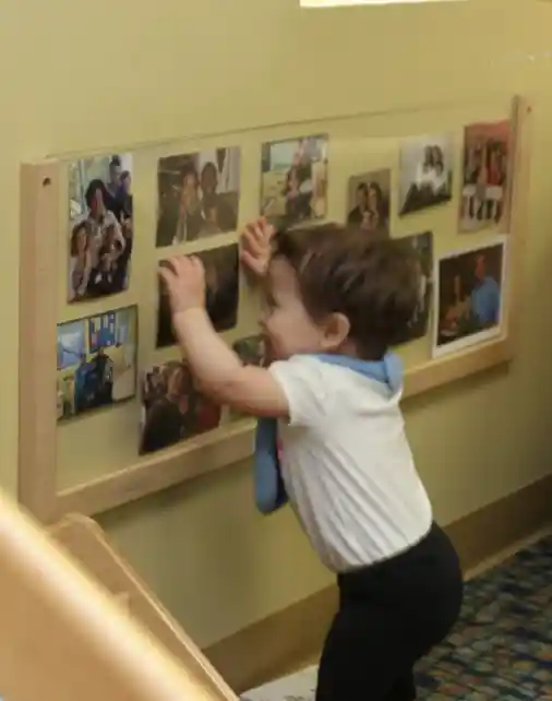 Add photos of your children to labels for cubbies, coat hooks, and other storage for children’s personal belongings. You can snap photographs of the children or invite families to send them in. These photos can also be incorporated as photo blocks for imaginative play or as part of children’s morning sign-in.
